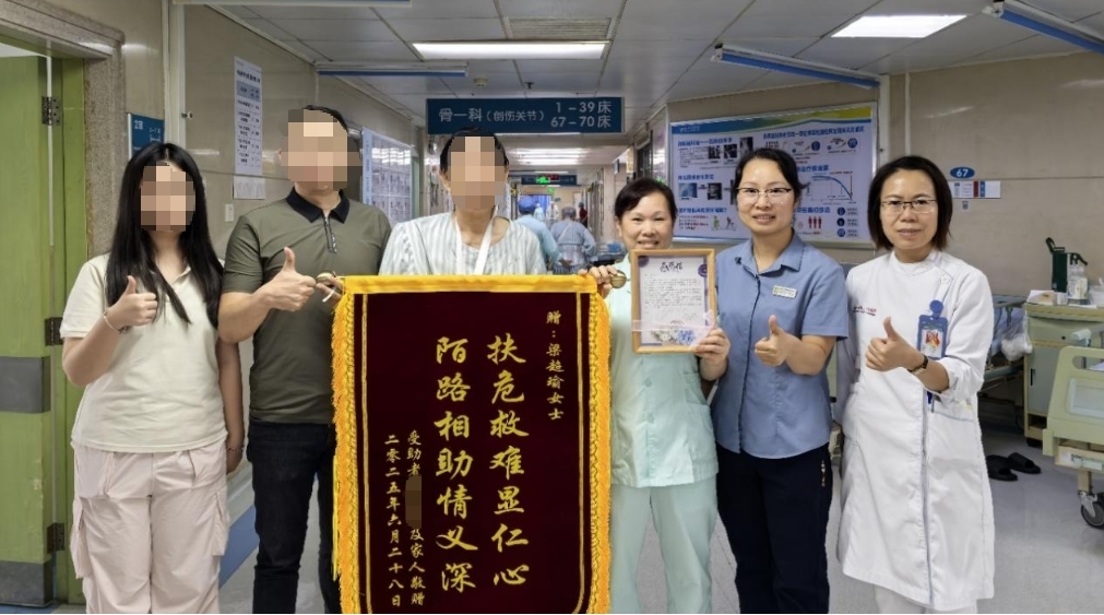 凭借多年在骨科护理工作中积累的专业知识,梁超瑜迅速判断老人的状况。她轻声安抚着惊慌失措的老人,“阿叔,别害怕,我是医院骨科工作的护工阿姨,让我来看看”,温柔的话语像一剂镇定剂,让老人的情绪渐渐平稳。随后,她小心翼翼地协助老人固定受伤的胳膊,避免二次伤害。紧接着,她又向周围的路人求助,和两位热心路人一起,小心翼翼地将老人搀扶起来,送往附近医院的急诊科。
