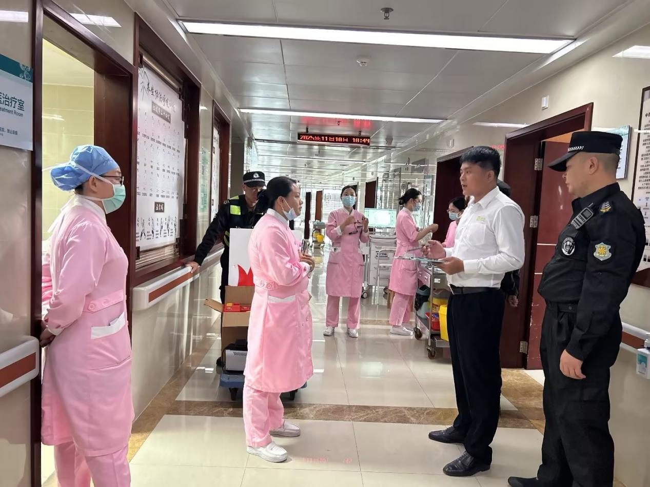 华车安保项目部始终将消防安全置于工作重中之重。日常工作中,安保团队恪尽职守,全面开展全院消防安全拉网式检查,对潜在隐患“零容忍”。同时,加密消防疏散通道巡查频次、加大巡查力度,确保“生命通道”24 小时畅通无阻。他们以日复一日的坚守,用脚步丈量安全尺度,以专业素养筑牢防护屏障,默默守护着医院的安全生产与有序运行。