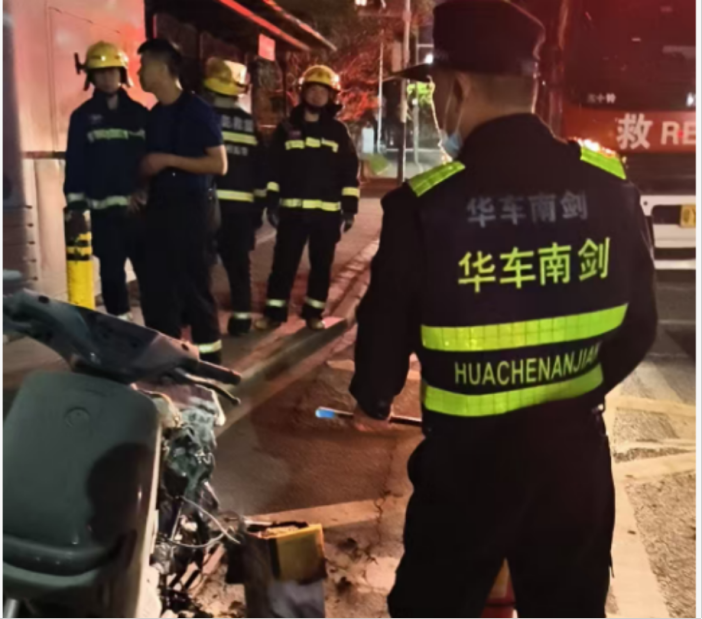 3月15日晚,南海区公共卫生医院附近公交站台突发电动车起火险情,华车南剑驻该院项目安保人员白应洪、陈永先闻声而动、协同处置,迅速扑灭明火化解安全隐患,以果敢行动践行安保职责,守护了周边群众的生命财产安全。