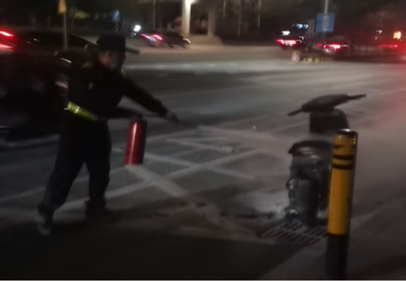当晚21时50分,项目安保员白应洪正开展医院区域夜间常态化巡逻,行至医院大门附近时,突然听到一名年轻男子的急切呼救,对方连声呼喊电动车着火急需帮助,神色尤为慌张。白应洪当即放下手头巡逻工作,快步跟随该男子前往事发地,发现火情位于医院大门对面马路的公交车站旁,一辆电动车正明火熊熊,火势已有蔓延迹象,周边环境复杂,若任其发展极易引发次生安全事故,情况迫在眉睫。